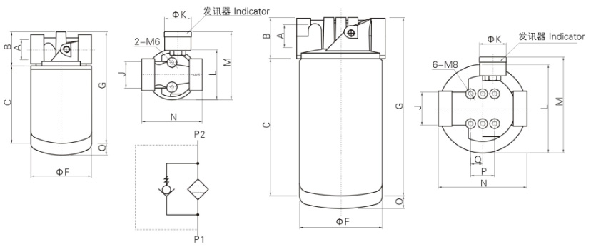 4、濾頭上設有安裝污染堵塞發訊器孔,以便檢測濾芯使用情況