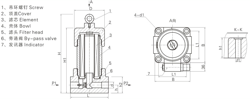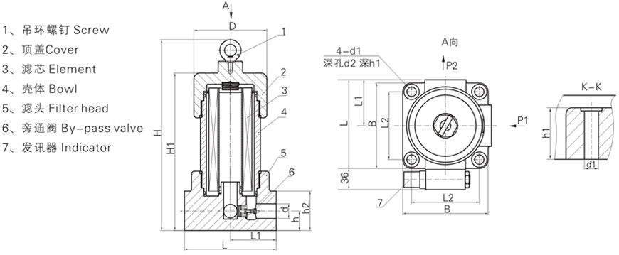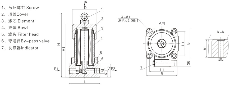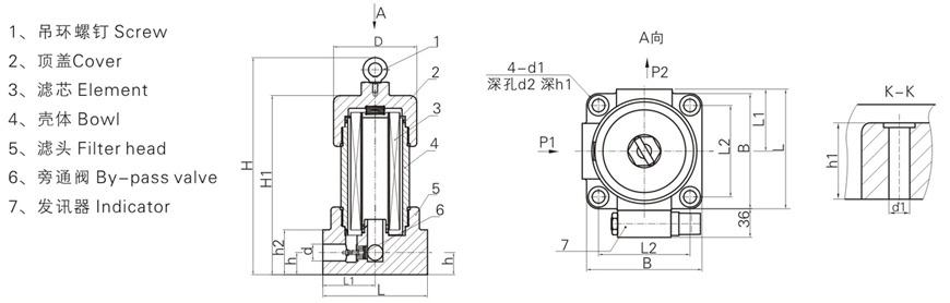 該過濾器設(shè)有壓差發(fā)訊裝置,當(dāng)濾芯污染堵塞到進(jìn)出油口壓差為0.35Mpa時(shí),即發(fā)出開關(guān)信號(hào),此時(shí)更換濾芯,以達(dá)到保護(hù)系統(tǒng)安全的目的。