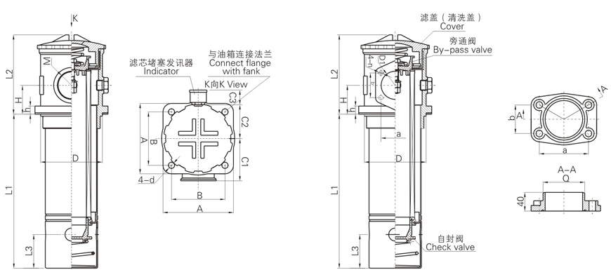 本過濾器可直接安裝在油箱側邊,上部或底部,吸油筒體侵入油箱內液面以下,過濾器濾頭露在油箱外,并設有自封閥,旁通閥,濾芯污染堵塞發訊器等裝置,更換濾芯和清洗濾芯時油箱內不會流出,本產品設計新穎,安裝方便,通油能力大,阻力小,清洗或更換濾芯方便等優點。