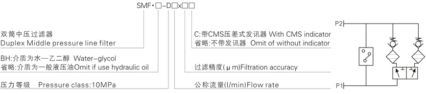 SMF系列雙筒中壓過濾器(新型)由兩只單筒過濾器,兩只單向閥,換向閥,發訊器等組成,它可在系列在不停機的狀況下更換濾芯,適用于連續工作的中低壓液壓系列。
