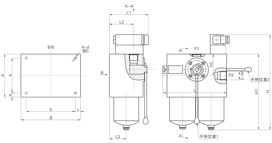 型號 H H1 H2 L L1 L2 A a B b M d h c e L3