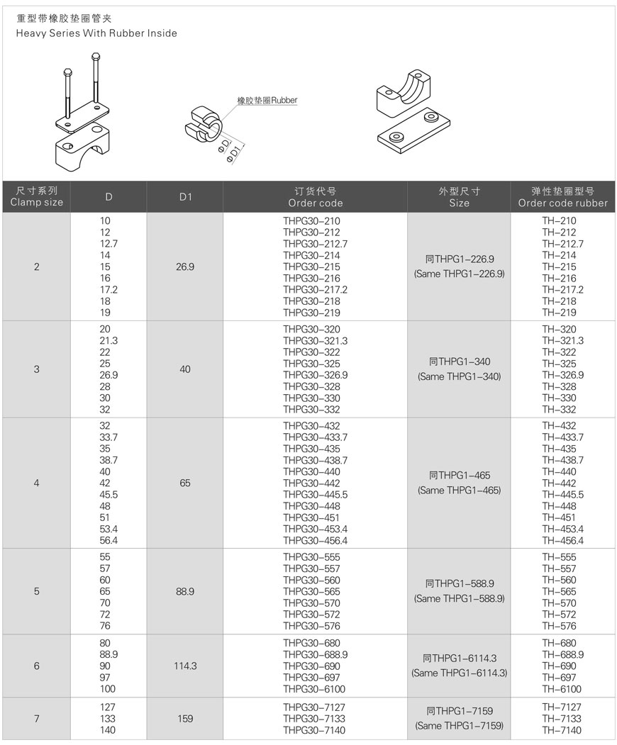 重型系列管夾應用于8種尺寸系列的高機械壓力管子,管子外徑Φ8~220mm。